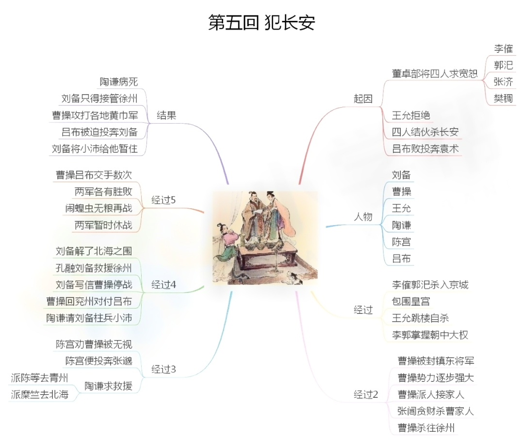 13.曹操报杀父之仇:曹操派人往琅琊郡接父亲曹嵩。曹家四十余人到徐州,徐州太守陶谦欲结好曹操,遂设宴款待,并派兵护送。不料所派之人竟然是黄巾军降将,他们杀死曹嵩一家,取了财务,逃窜他处。曹操大怒,于是发誓要想陶谦报杀父之仇。