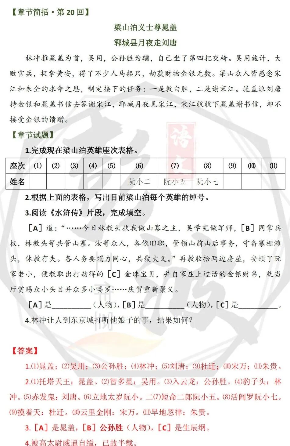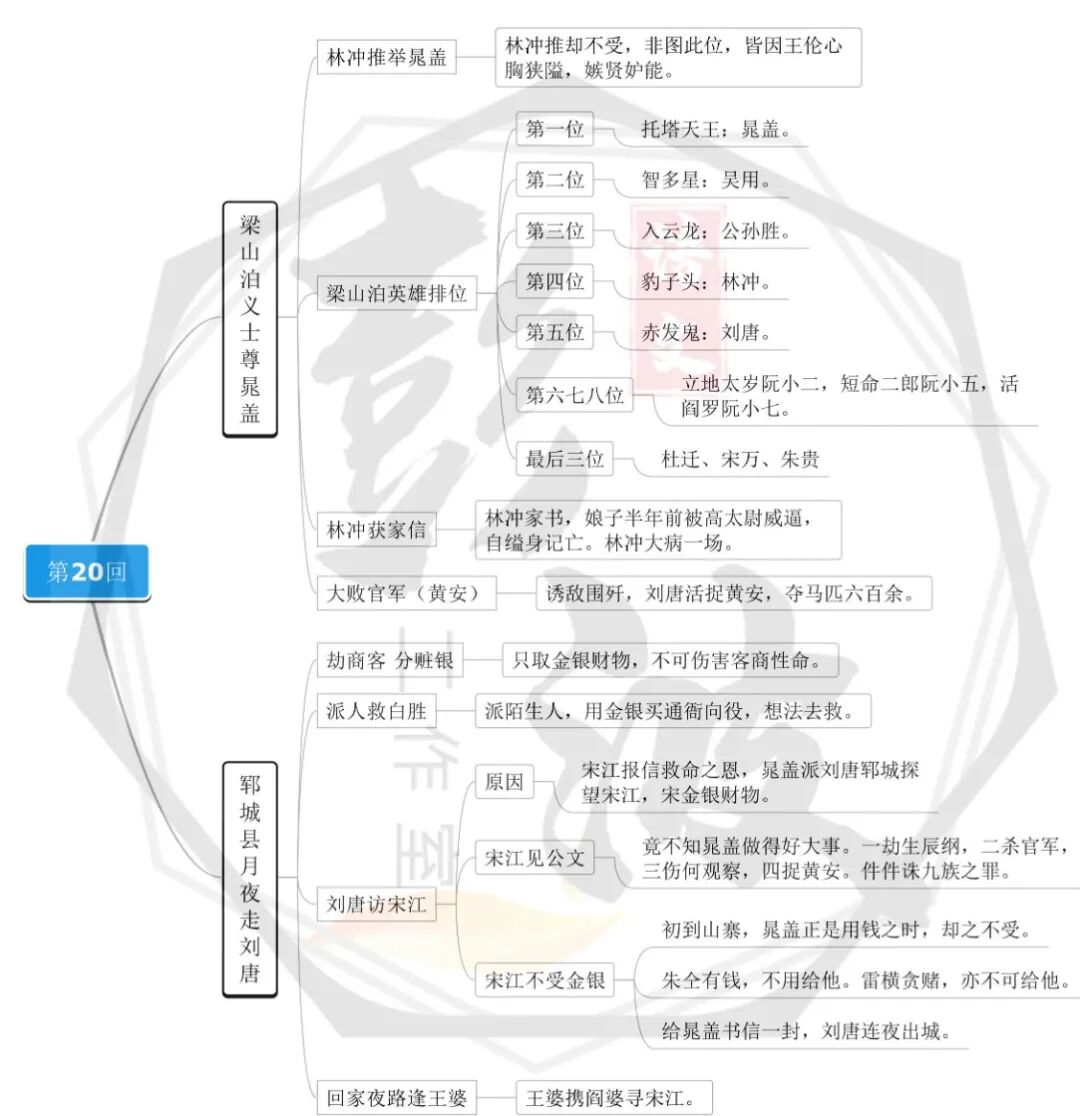 ●【水浒传】第20章:梁山泊义士尊晁盖 郓城县月夜走刘唐|思维导图+情节概括+章节试题