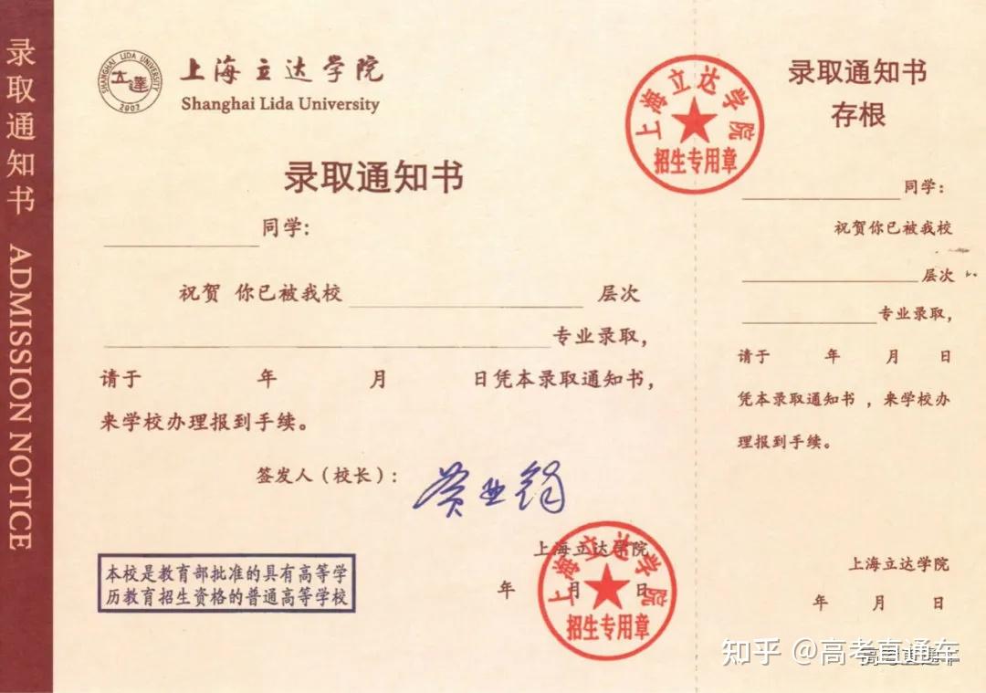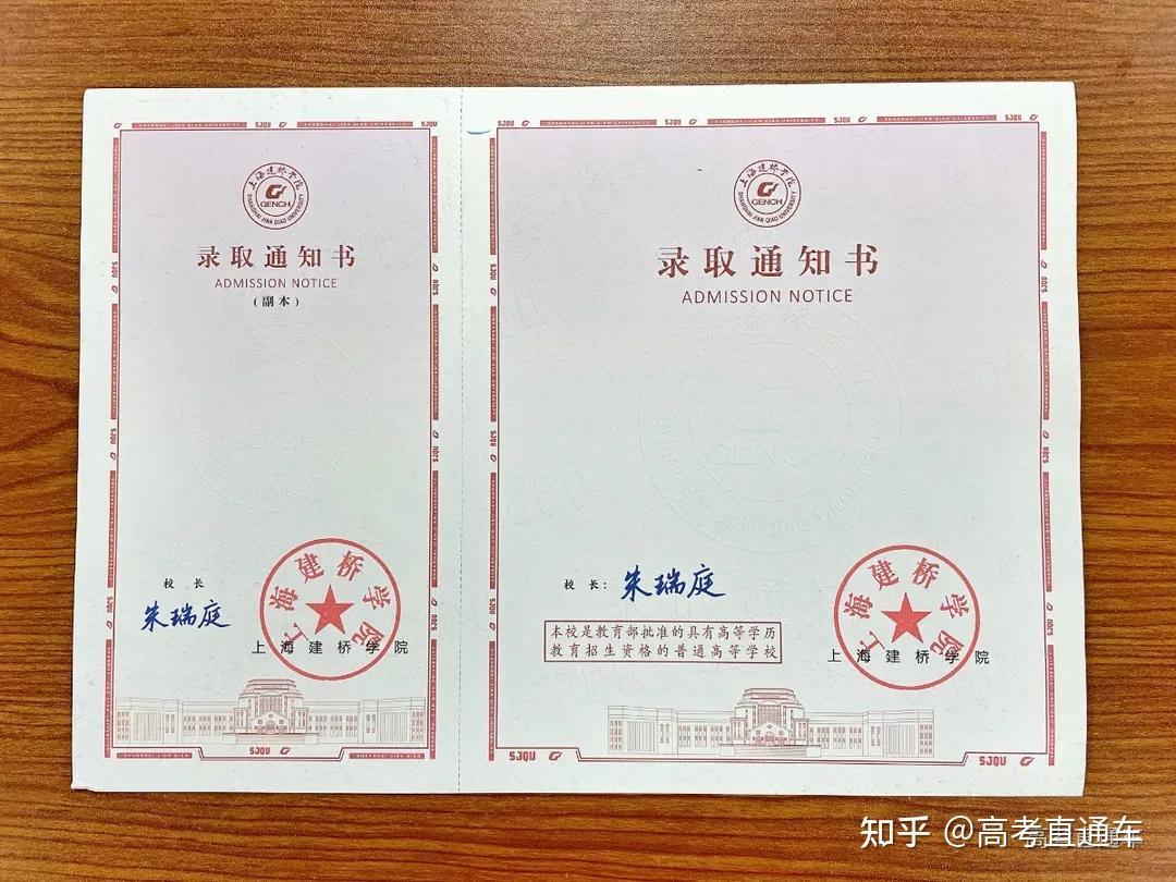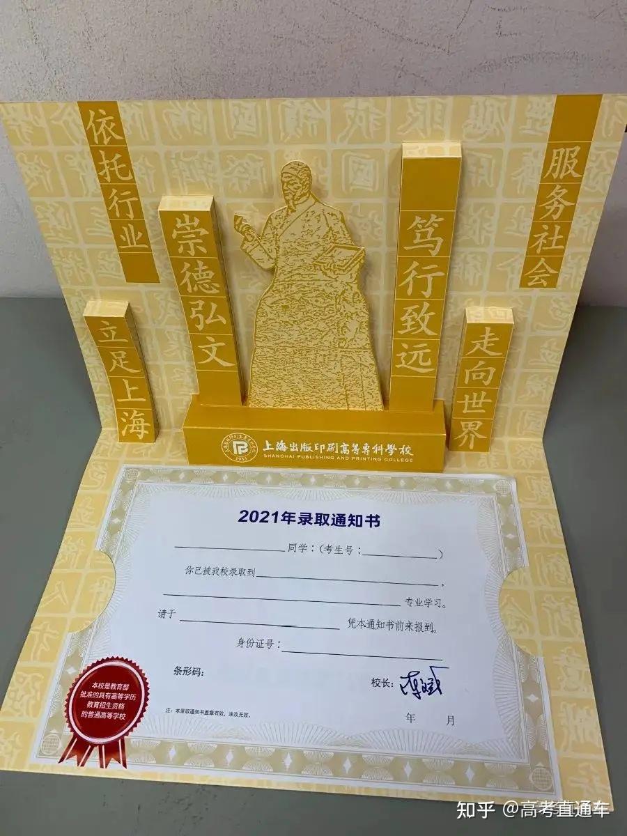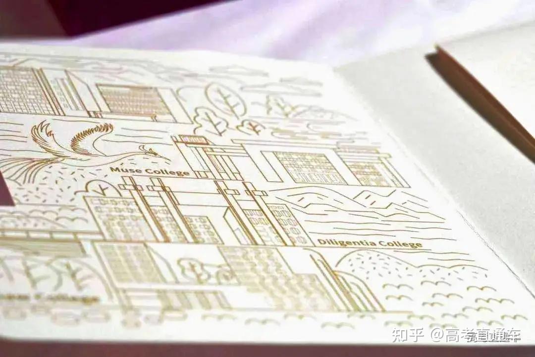 2021年的录取通知书信封与纸张选用的是带有珠光、轻盈但又坚硬的魔力卡材质,“录取通知书”字样及大学logo均采用了烫金工艺,配以徐扬生校长书法和中英对照的内容,完美体现了大学“结合传统与现代,融会中国与西方”的办学使命。