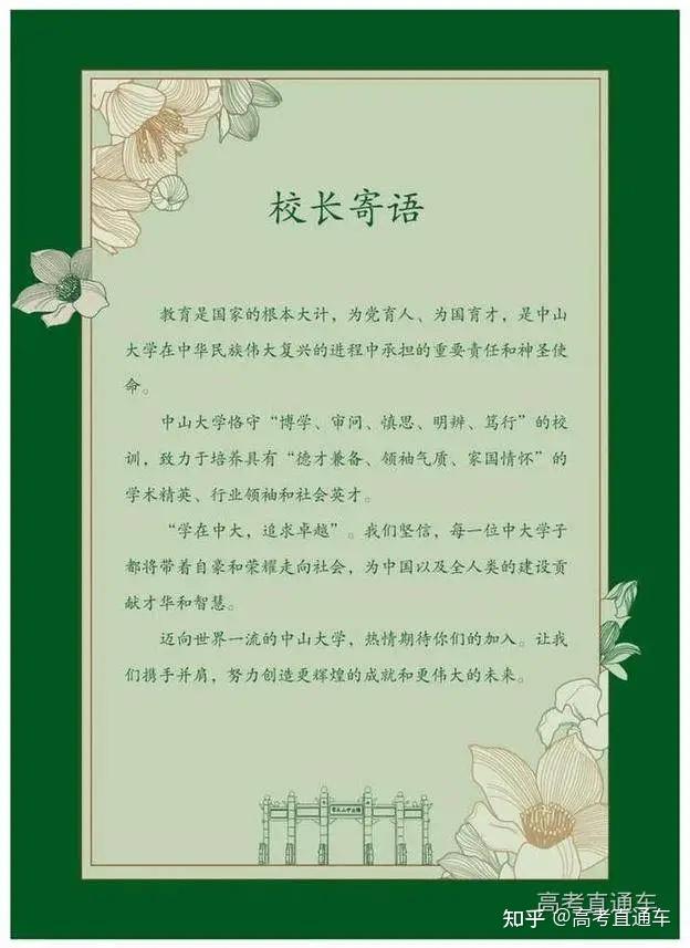 寄语中,承载着校长对新生们的美好祝福、殷切希望,传递着以国家民族为己任的中大精神。