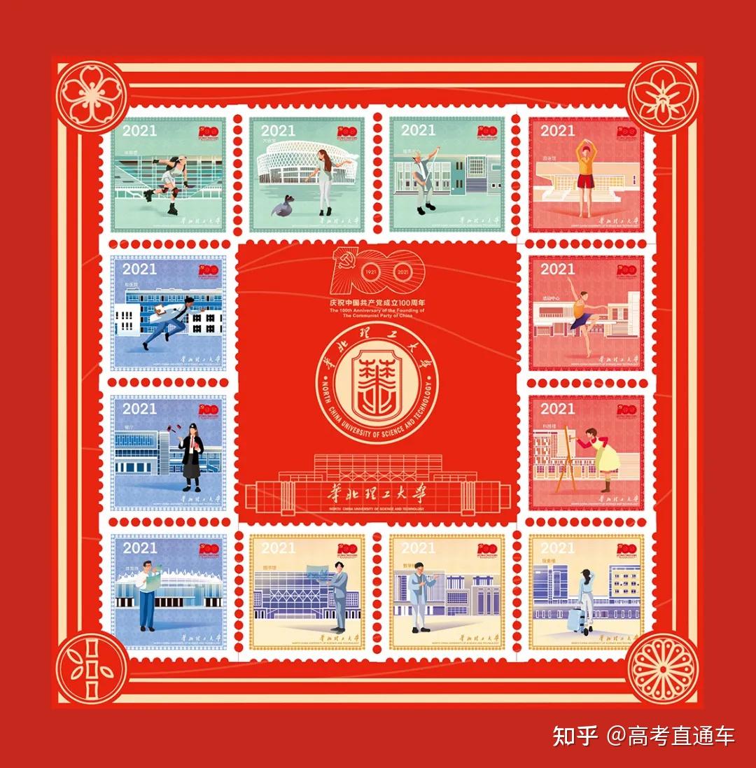 它是由12枚邮票和学校校徽图案的书签组成,红色主色调展现建党百年的吉祥喜庆和学校积极乐观的精神风貌;建党百年的标识寓意厚植家国情怀,礼赞建党百年;整套邮票寓意学校和学子心连心。