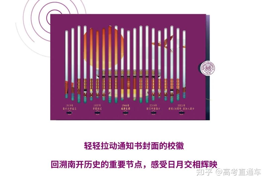 通知书整体色调由象牙黄和朝阳红组合表现,象牙黄的运用凸显出学校自1895年建校以来百年的历史积淀以及对莘莘学子金榜题名的祝贺,朝阳红象征着建党百年的吉祥、喜庆,寓意着传承红色基因,赓续精神血脉,同时也代表学校充满活力,满怀信心站在新的起点走向新的未来。