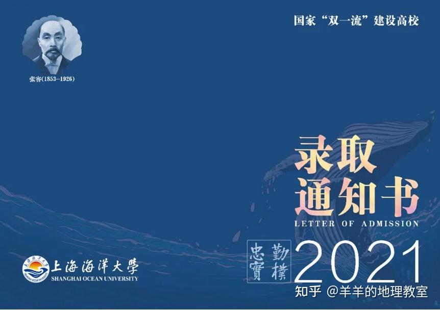 通知书封面印着创校先贤张謇的头像、校训“勤朴忠实”和海中畅游的抹香鲸,封底印着国内首艘远洋渔业资源调查船“淞航”号和“从海洋走向世界,从海洋走向未来”的新时代发展使命。