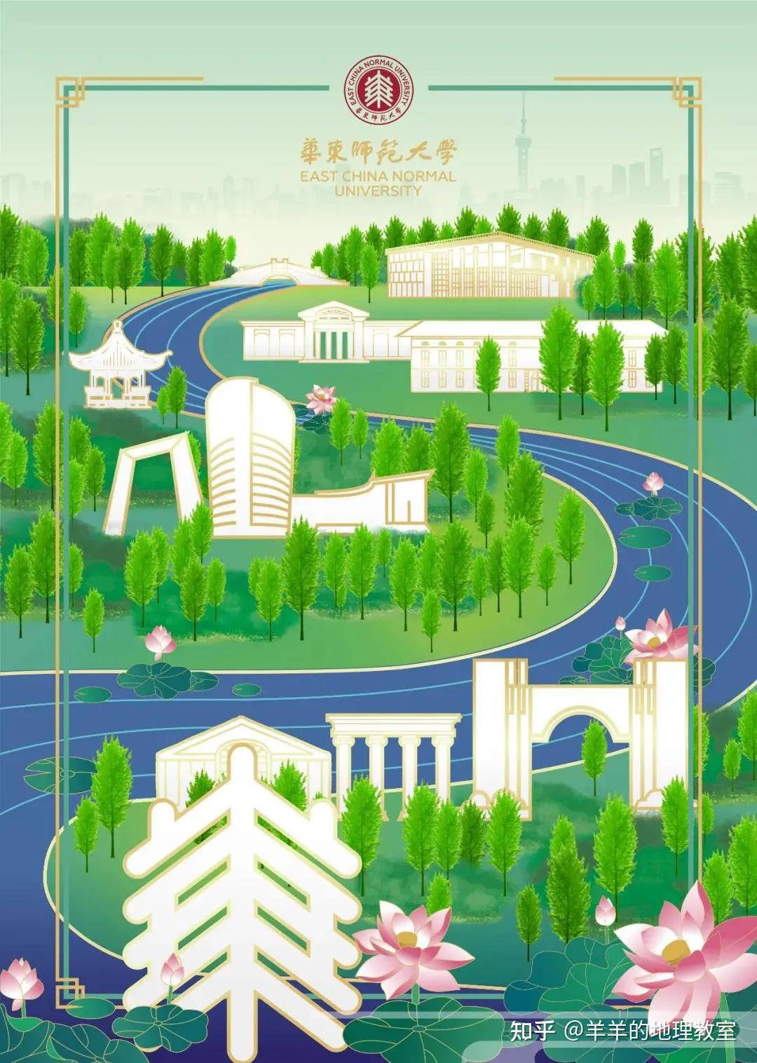 水杉、莲花作为校树、校花,展现着华东师大人的积极进取,树丛之中,群贤堂、思群堂、大夏亭、文脉廊等特色建筑尽显眼前。