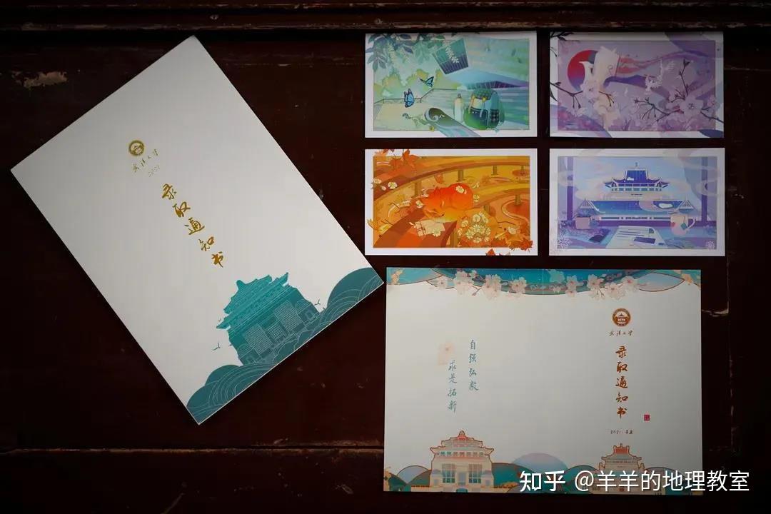 通知书史上首次以“1+4”的模式组成大礼包,一纸素笺,送来登科之喜,几封色彩,承载珞珈四季!