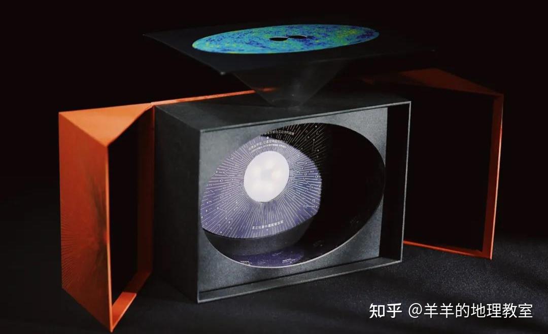 更精美的设计在打开这一层之后,黑色底板的背景里,浓缩了一个蓝色的球形,那是380000岁的天空。