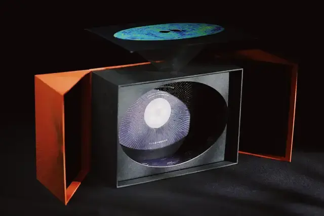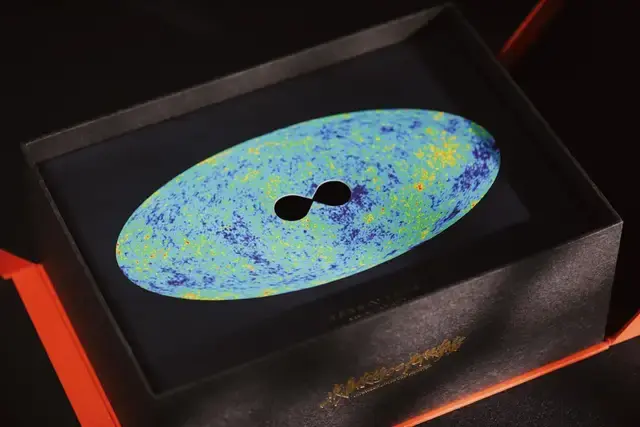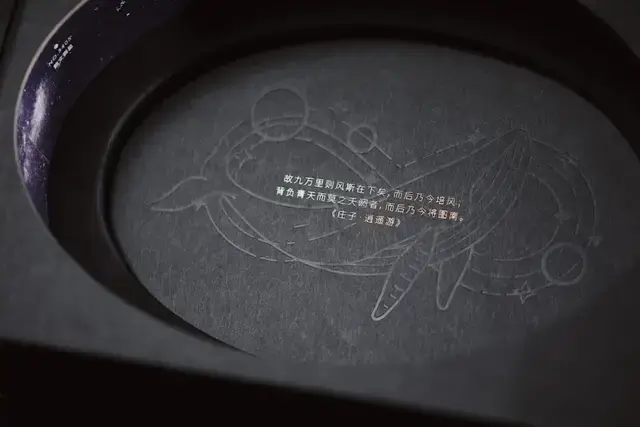 更精美的设计在打开这一层之后,黑色底板的背景里,浓缩了一个蓝色的球形,那是380000岁的天空。