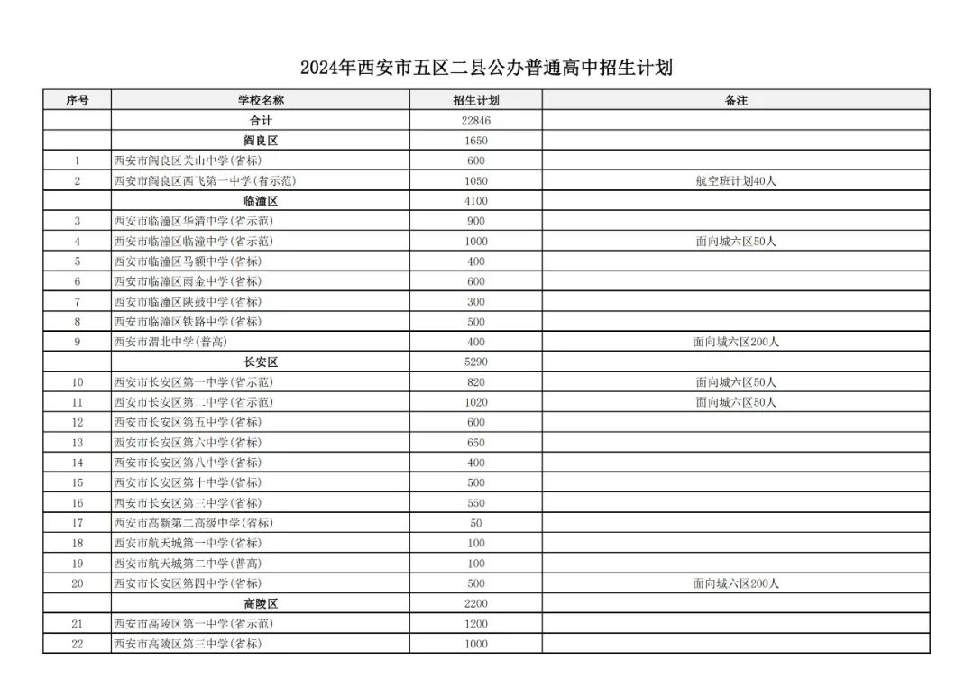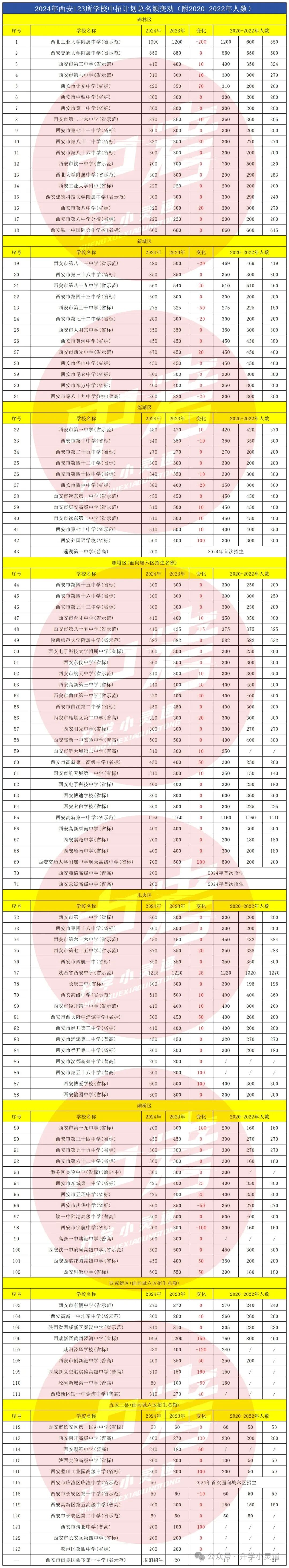 2024年西安市123所学校统招计划变化!供2025届参考!