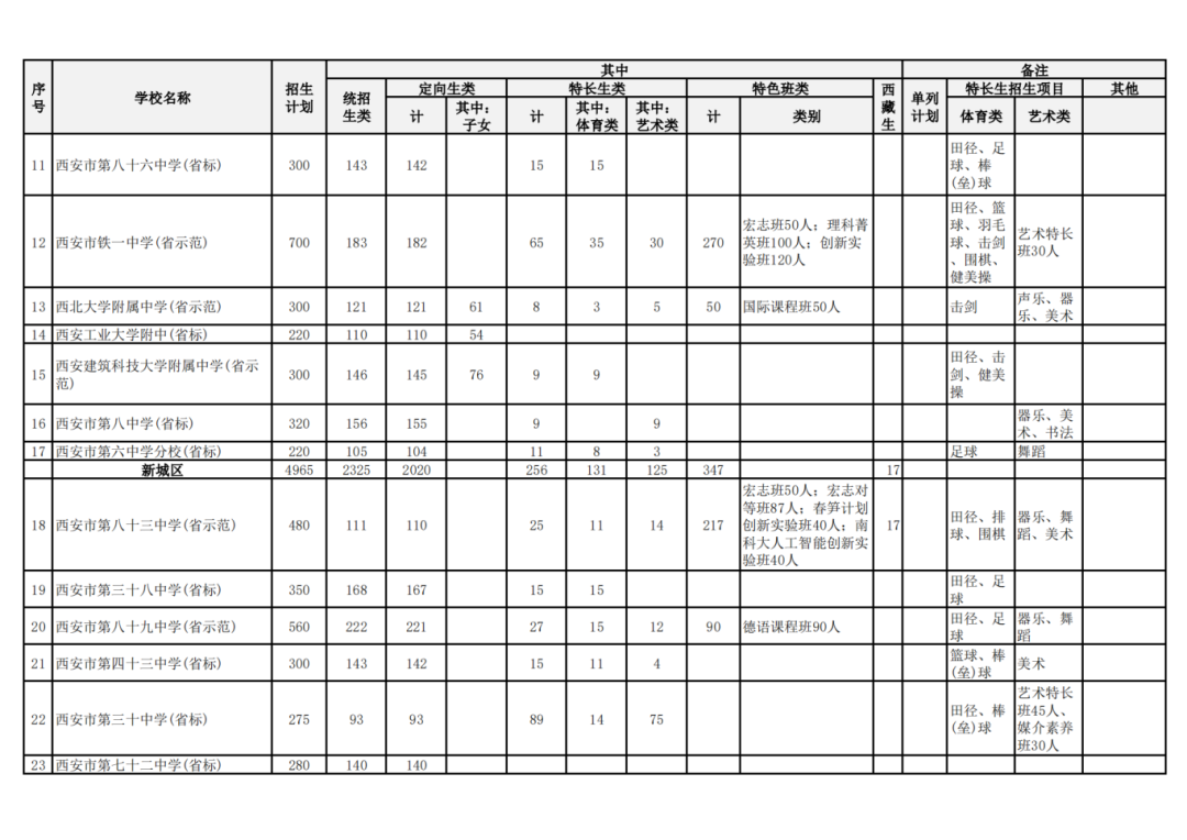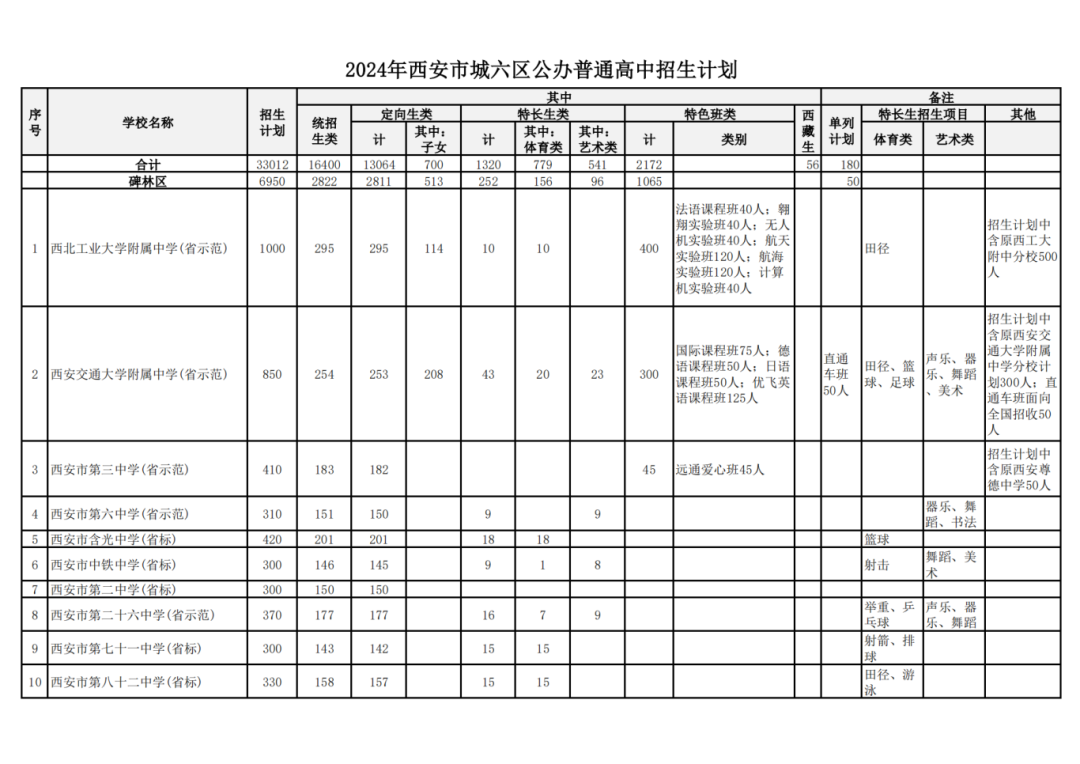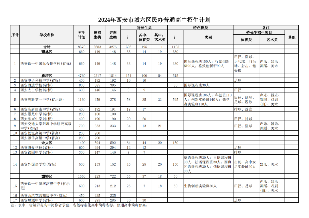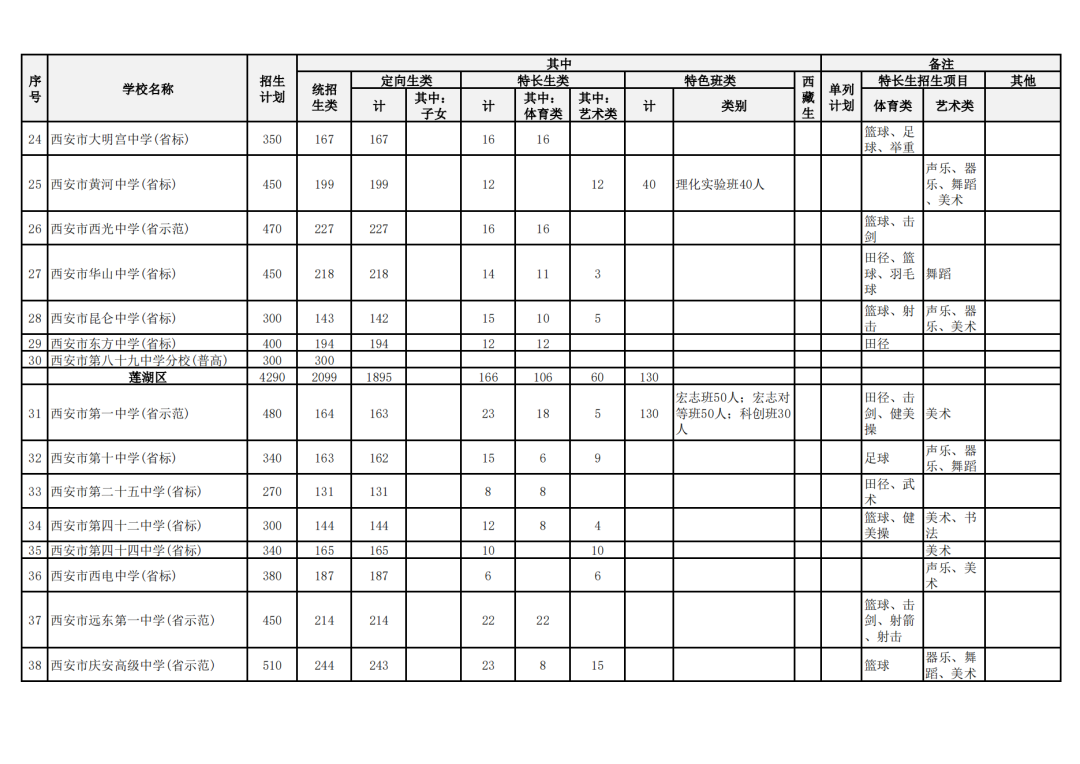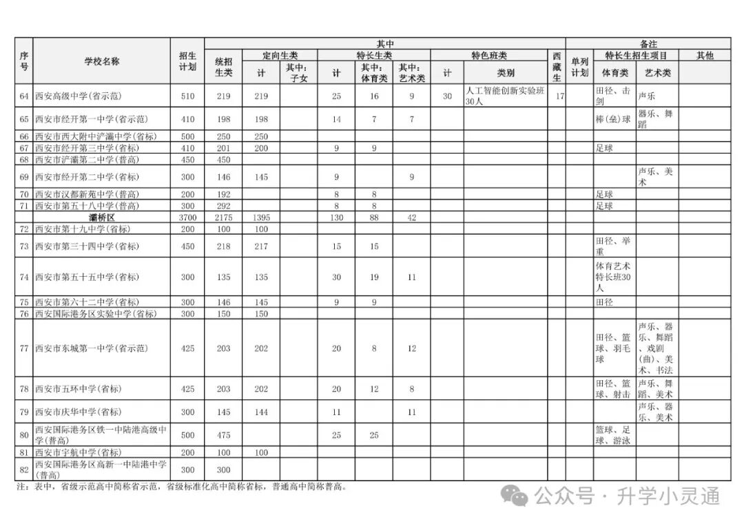 2024西安111所高中特长生名额变化一览表!供2025届参考!