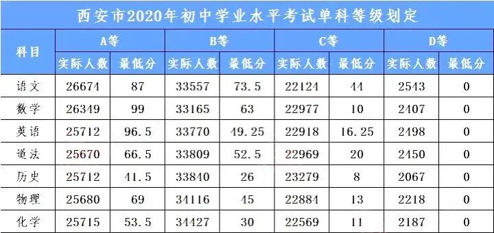 如果在中招咨询会上,有学校以考生地生或者全科不是A或者其他任何理由,拒绝考生填报的话,显然是违背教育局要求的,而且家长也完全可以不予理会,根据成绩情况自行填报即可。大鹿推测这个说法的初始本意可能是说,“想进五大名校,每个科目必须都得达到A,才有可能考进去。”因为五大名校的录取线高,如果考生有一门科目失分严重,拿到B,则意味着总分可能达不到五大的标准。来看看2020年西安中考各科成绩等级划分就明白了:如果你还有听说过其他关于中考的传言,感到困惑不解的,欢迎添加大鹿微信沟通!