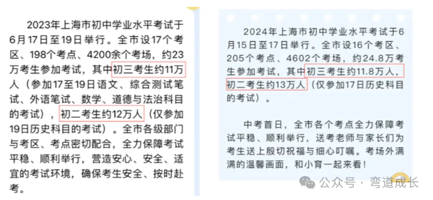 据“上海教育”官方发布的数据显示:去年初二考生约12万人,今年初三考生约11.8万人。