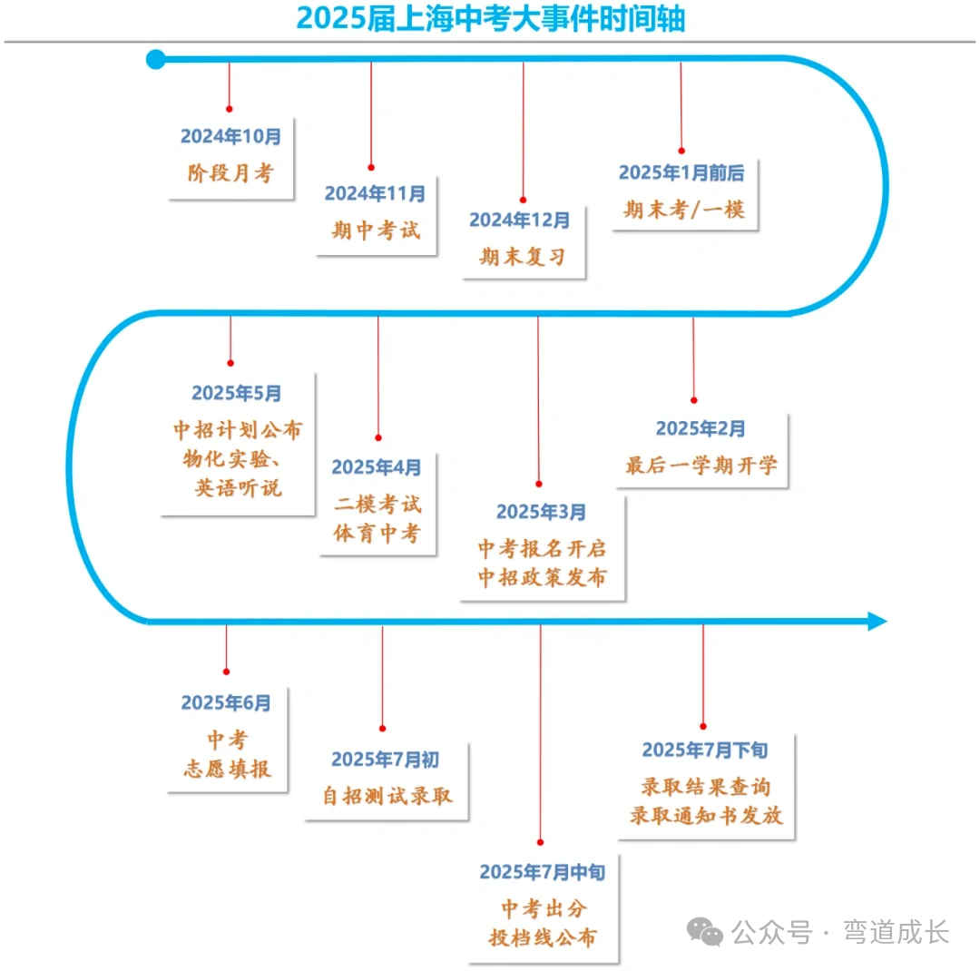 本文弯道小喵就来帮大家整理一下2025上海中考时间轴,希望对各位考生的中考复习规划提供帮助~