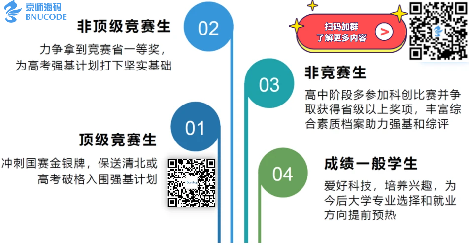 京师海码核心团队为北师大教练团队。作为中国最好的师范类院校,我们有自信做出最优质的教学。我们的教师不仅具备丰富的教学经验,还在信息学奥赛领域内有专业的经验与能力,能够为学生提供高质量的指导和培训。
