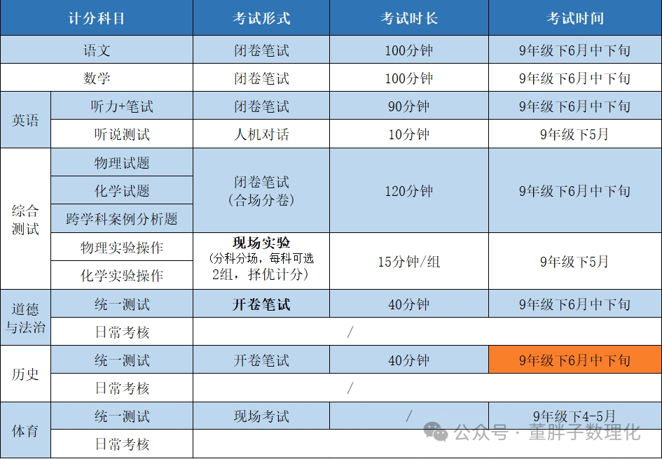 中考考试形式、时间及时长