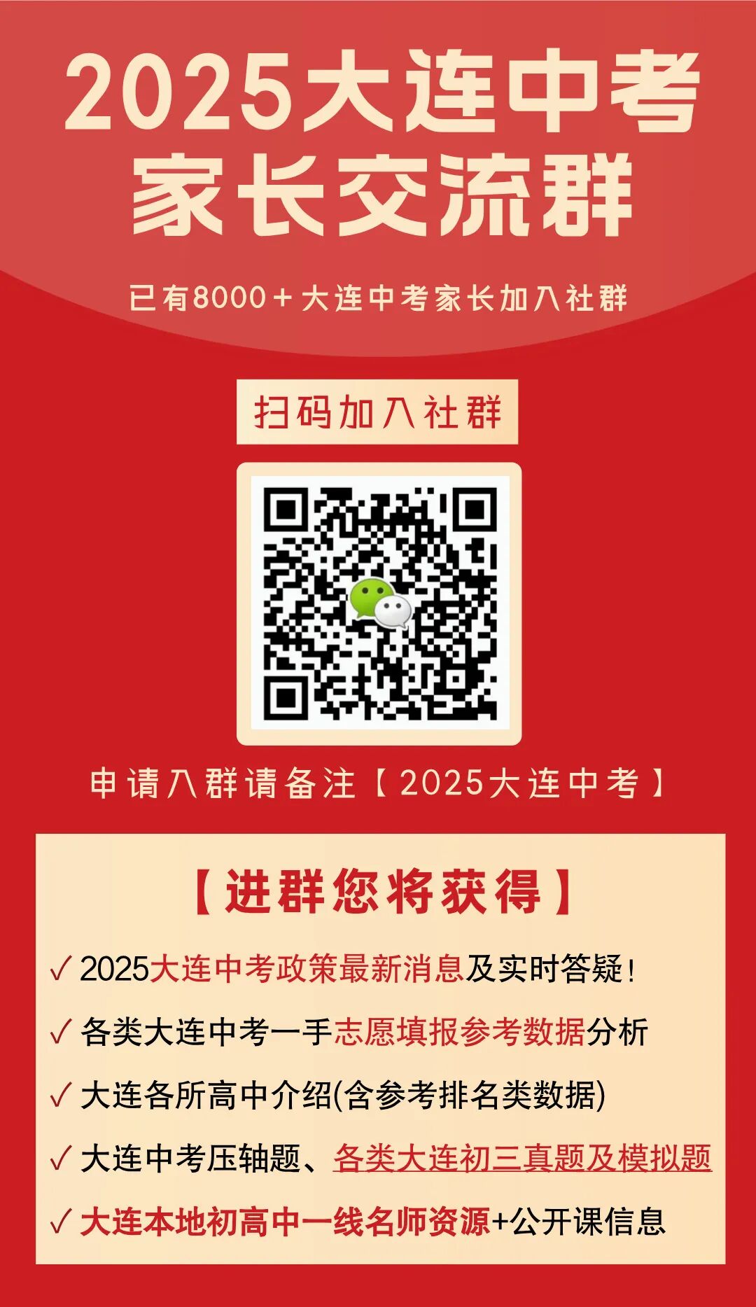 我们拉您入2025大连中考家长交流群