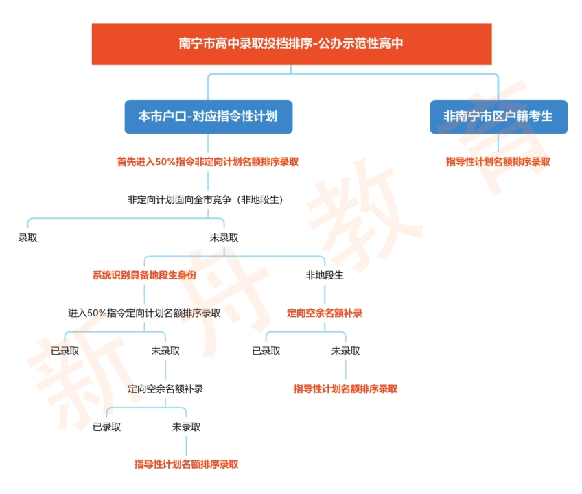 3.如该校定向生名额因参与排序的考生成绩不达标而没有用完,空出来的名额需要补录,将转由已报名该校的市区全体南宁市区户籍考生统一竞争,即产生定向空余名额的排序。