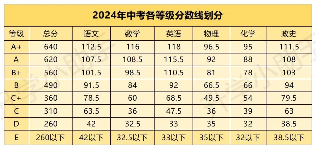 以下是舟老师整理好的2024年的中考成绩划分标准、录取分数线、中考时间轴等,可作为2025年参考!建议大家先收藏再看!