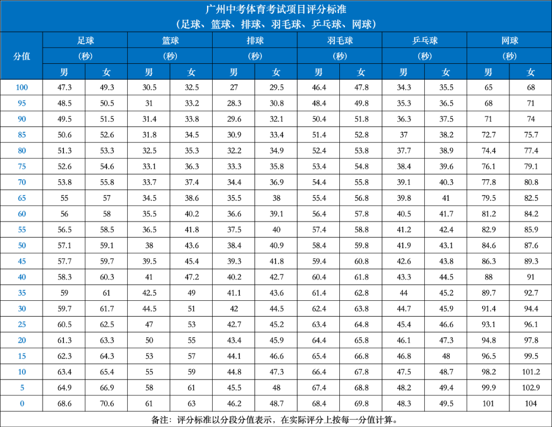 根据官方文件《2025年广州中考体育考试项目规则与评分标准》统计整理