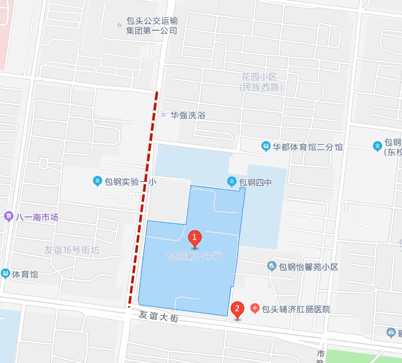 友谊大街的民族西路至包钢五中西墙区间道路段