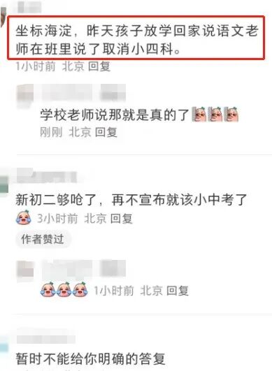关于“中考取消小四科”问题,目前有什么进展?赶紧随在京小升初(ID:zjxsc1)一起来看看!