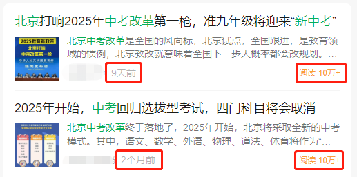 大家都知道,去年9月份,北京发布了2025年中考改革方案,但是今年暑期,北京中考改革相关词条又热起来了,仔细一看都是很多外地的自媒体在发布,甚至还有外地的官方号,有的文章和视频都是10万加的阅读。不少北京家长吓一跳,还以为中考又要改革了