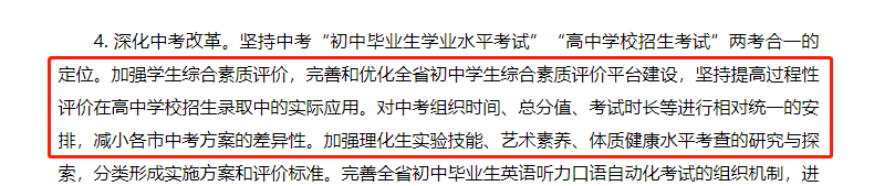 划重点:对中考组织时间、总分值、考试时长等进行相对统一的安排,减小各市中考方案的差异性。