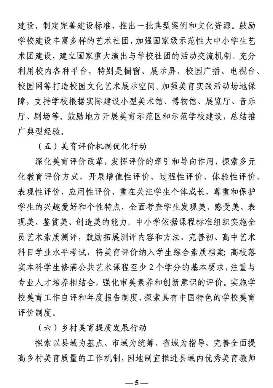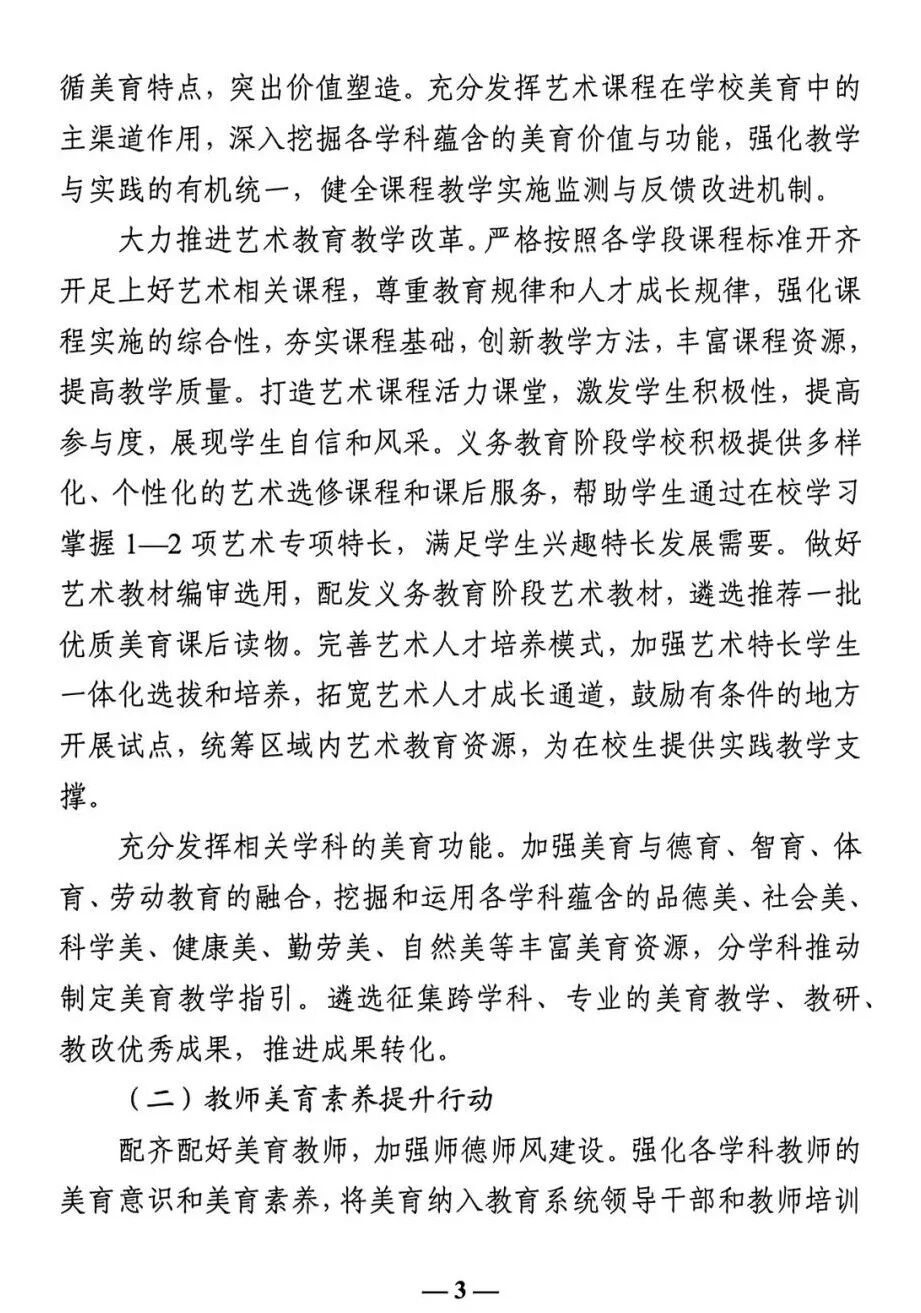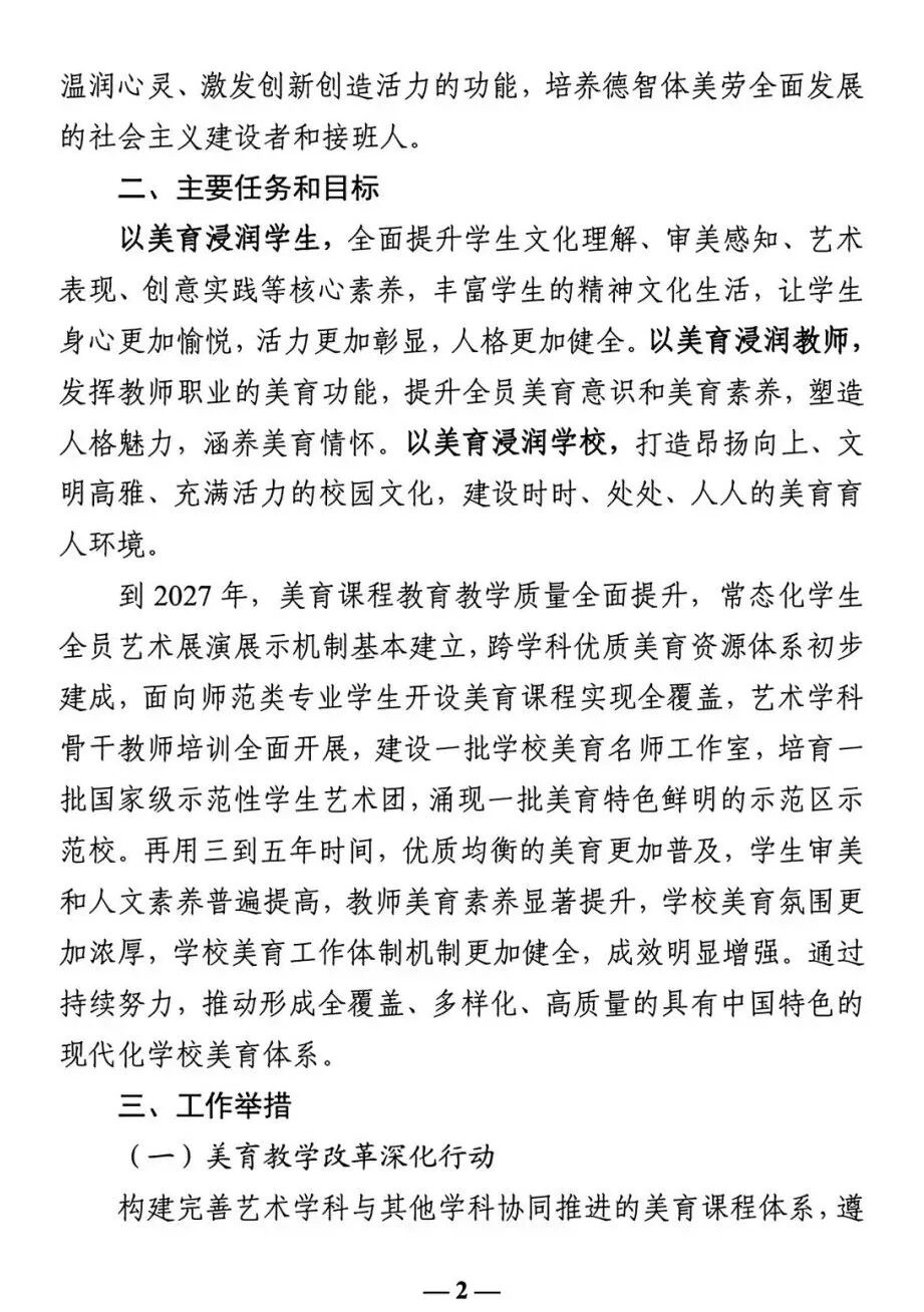 这份文件指出,2027年美育课程教育教学将实现质量全面提升,全面考评学员发现美、感受美、表现美、鉴赏美和创造美的能力。